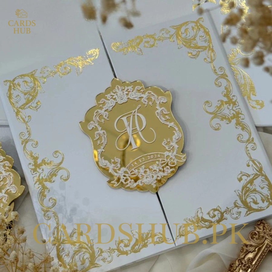 Luxury Gold Foil Wedding Invitation Card – Royal White & Gold Design
