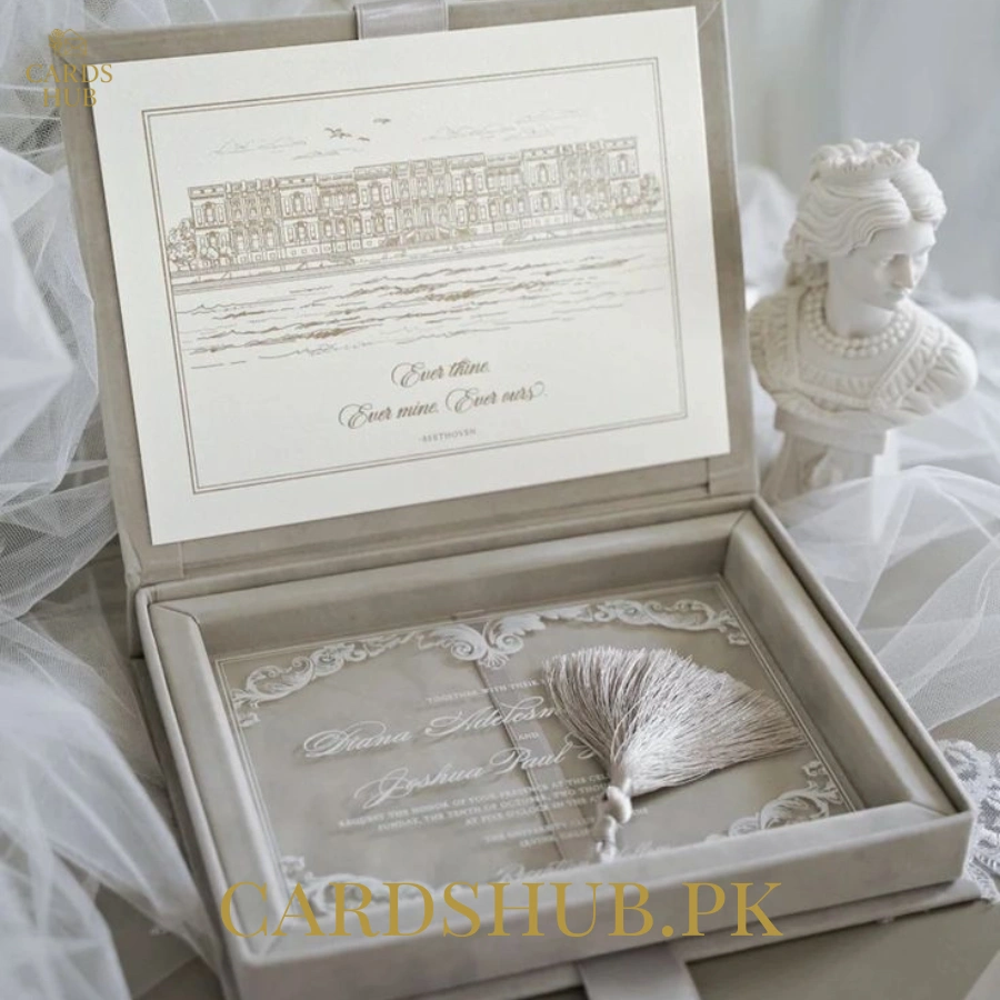 Luxury Wedding Invitation Box with Acrylic Card and Tassel Detail
