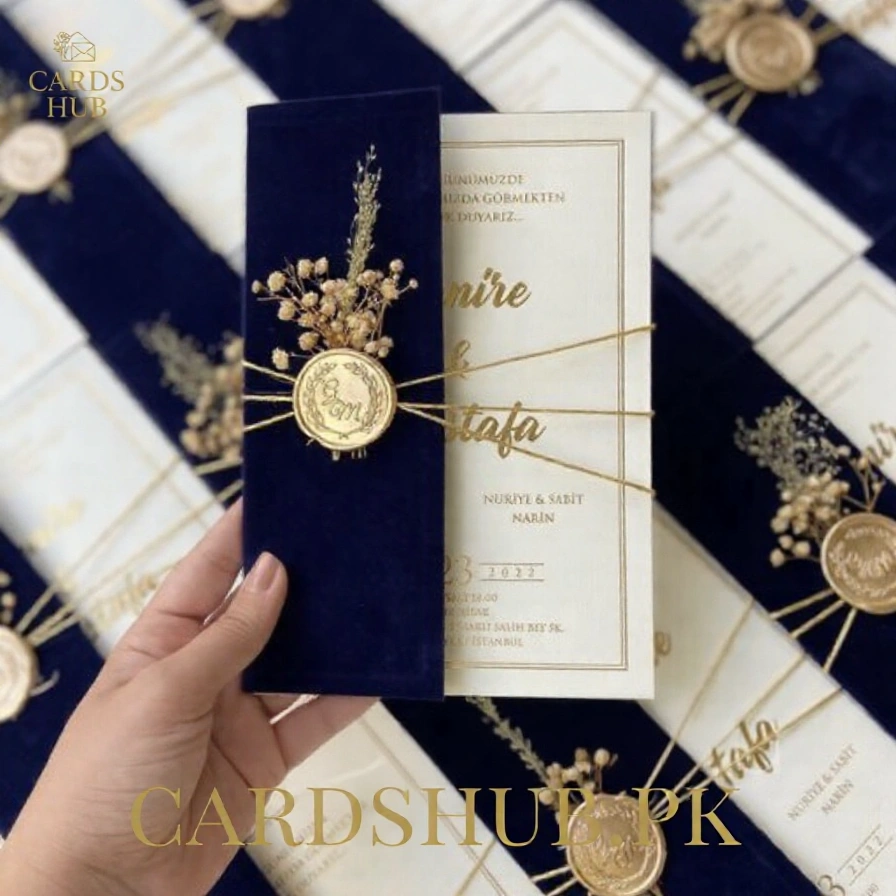 Navy Blue and Ivory Luxury Wedding Invitation Card with Gold Wax Seal