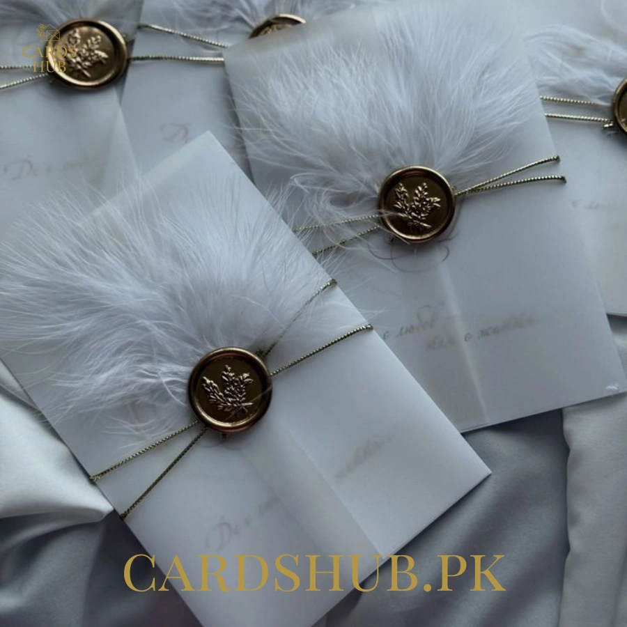 White Feather Wax Seal Luxury Wedding Invitation Card